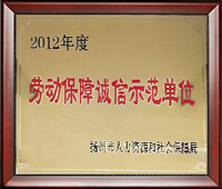 ◇ 榮獲2012年揚州市勞動保障誠信示范單位